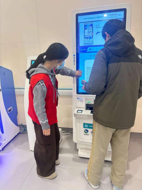 医院门诊岗位,学子发挥专业优服务。王伊琳等同学化身医院“暖心向导”,在门诊大厅为患者及家属指引路线、讲解就医流程,协助完成挂号、缴费等操作,为老年及行动不便患者提供陪同就诊服务。学子们将课堂知识与临床服务结合,提升了专业实操能力,更坚定了用专业守护群众健康的初心。